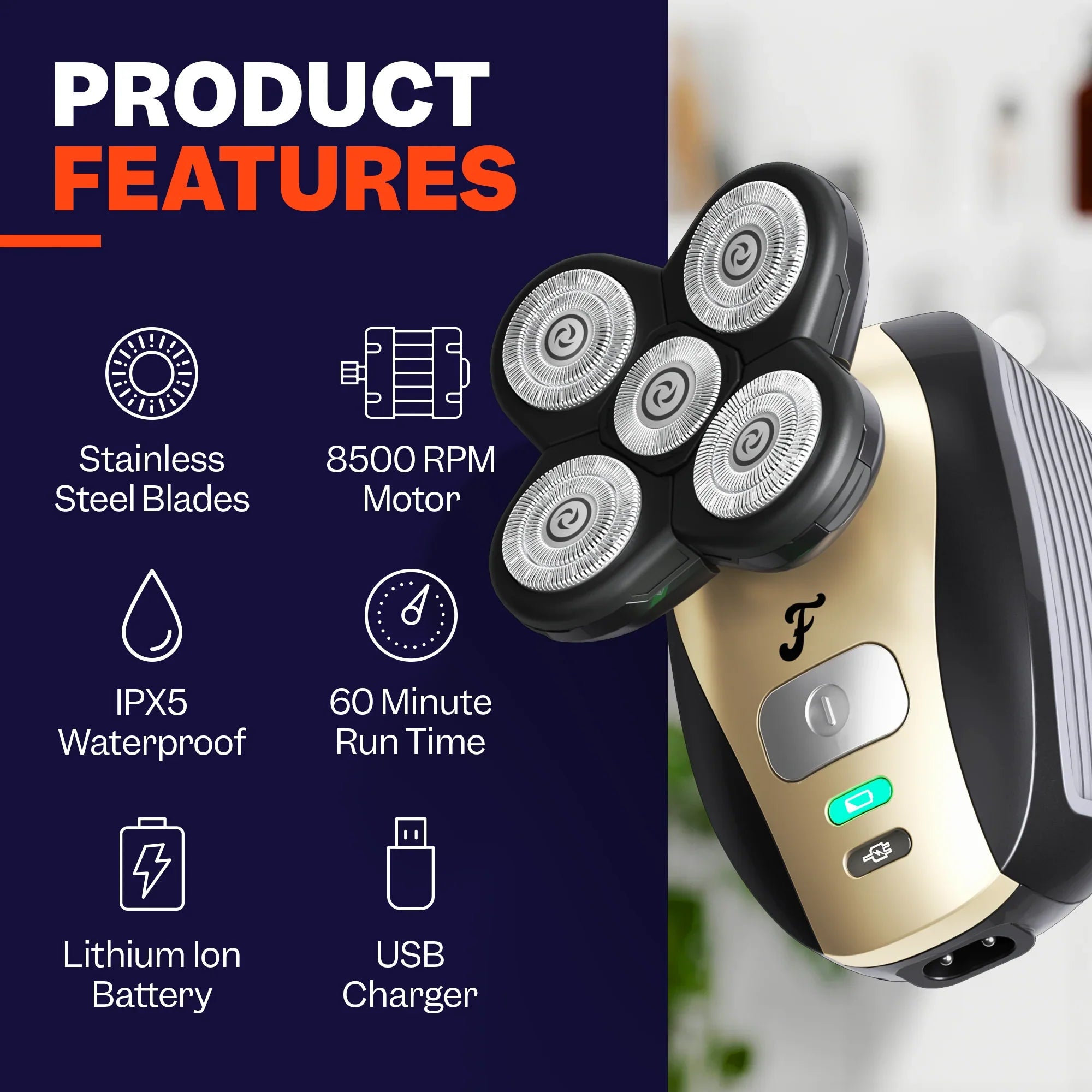 Our shaver is designed to provide a fast and efficient shaving experience. The shaver features multiple rotary blades that work together to quickly and effectively cut hair allowing you to shave your head in as little as 90 seconds. The shaver is also designed with a powerful motor that ensures a smooth and consistent shaving experience, further reducing the time needed to shave your head.